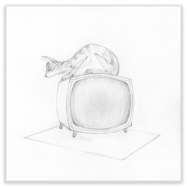 Web_DS_Cat_CRTV Cat and Tube TV Mechanical pencil on paper 5″x5″ Share: Click to email a link to a friend (Opens in new window) Email Click to share on Tumblr (Opens in new window) Tumblr